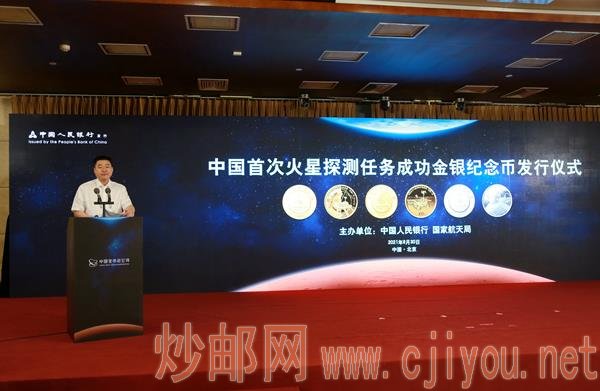 发行仪式上,中国人民银行货币金银局副局长陈建新宣读了中国首次火星探测任务成功金银纪念币项目发行公告。