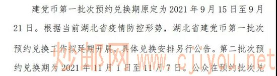 湖北省第一批兑换日期推迟,分配量223万枚,具体时间另行通知。核查期、第二批兑换日期不变。