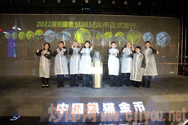 发行仪式上,中国人民银行上海总部党委委员、副主任刘兴亚,中国金币总公司总经理井军,上海黄金交易所总经理王振营,中国长城硬币投资有限公司总经理张明艳,中国工商银行股份有限公司贵金属业务部副总经理李雪松,中国银行股份有限公司上海市分行副行长王琛,中国邮政集团有限公司山东省分公司集邮与文化传媒部总经理王兴强,永银文化发展集团有限公司董事长陈永共同为2022版熊猫贵金属纪念币揭幕。