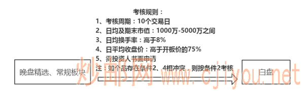 晚盤精選/互通板塊藏品同時滿足以下四條考核規則,次月起,可由戰略投資人申請轉入白盤交易(計畫自11月1日起實施),詳情如下:
