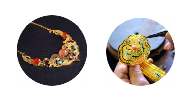 花丝工艺由于用料珍奇,工艺繁复,因此,花丝镶嵌在历史上一向只是皇家御用之物,其工艺在我国历朝代的宫廷饰品和礼器中均有呈现,也是我国传统奢侈品的工艺特色之一。
