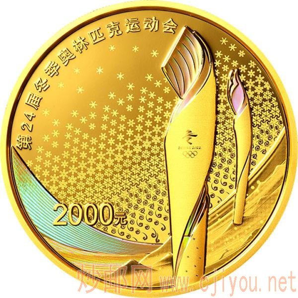 150克圆形金质纪念币的背面,出现了第24届冬季奥林匹克运动会火炬的图案,币面的色彩富于变化,让人感受到冬奥会即将启航的喜悦。2021年2月4日晚,在北京2022冬奥会倒计时一周年活动上,名为“飞扬”的奥运火炬揭开面纱。10月18日,北京冬奥会火种在奥林匹克运动的发祥地——希腊伯罗奔尼撒半岛的古奥林匹亚采集成功。10月20日,北京冬奥会火种顺利抵达北京。