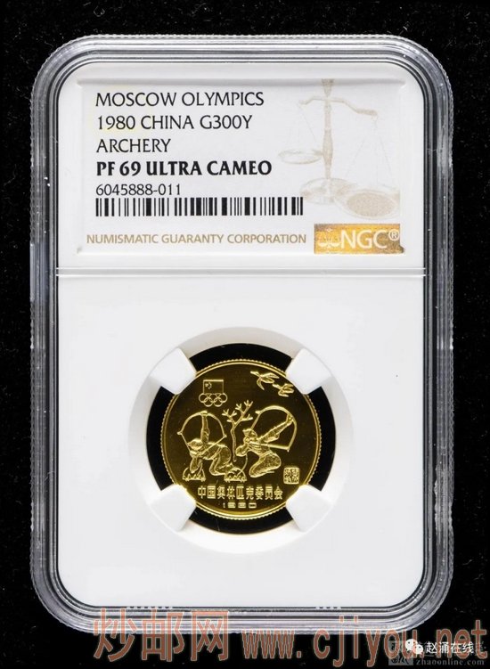 1980年中国奥林匹克委员会-古代射艺10克精制金币一枚(NGC PF69)