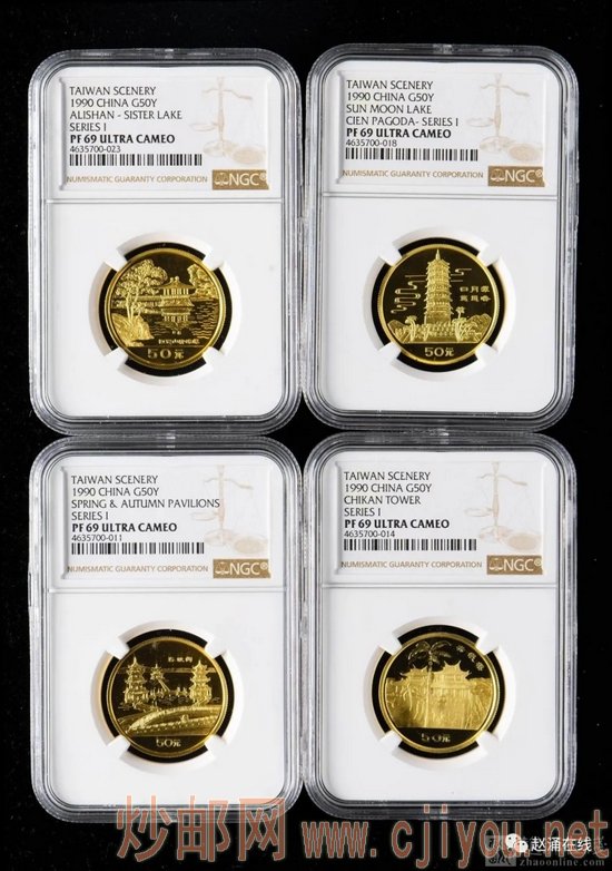 1990年台湾风光第(1)组1/2盎司精制金币四枚一套(NGC PF69)