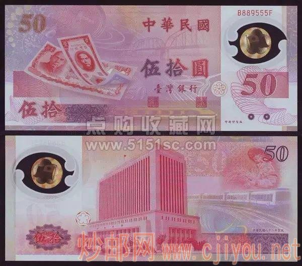 新台币发行50周年纪念钞的特色是一张塑料钞中含有另外两张钞的图案(币中币),看起来有3个面值,3个号码。目前,这张塑料钞基本实现了流通,单价较低,价格为几十元,入手压力不大。不过,近一两年由于疫情影响,流入内地市场的量不太多。