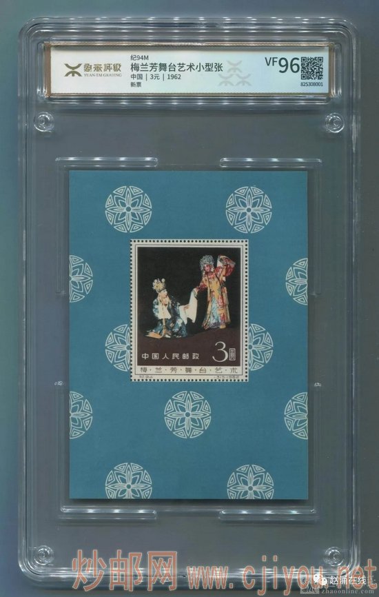 此枚纪94M梅兰芳小型张为VF96高分,最终以13.07万元成交。赵涌在线今年除此之外的全品梅兰芳型张,最高成交价为1月30日的9.83万元,此价格相比增长了30%以上!