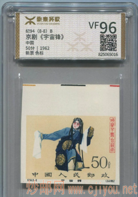 9月底成交一枚全品纪94B(8-8)无齿带直角宽边票,成交价5,994元。此同类型源泰VF96高分票,增幅近5倍之多!