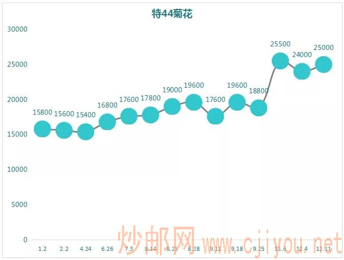 菊花这一年的交易量可以说非常可观,这也提现了众多用户对此票的喜爱,从5月底开始,菊花的价格还是呈现大曲度递增趋势,目前最大涨幅比例66%。