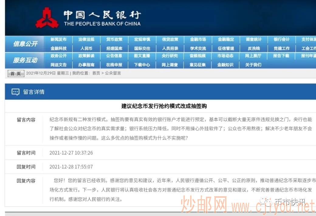 【回复原文】 您好!您的留言已经收到。感谢您的意见和建议,近年来,人民银行遵循公开、公平、公正的原则,推动普通纪念币采取逐步市场化方式发行。下一步,人民银行将认真吸收社会各方对普通纪念币发行方式改革的意见和建议,不断完善普通纪念币市场化发行机制。感谢您对人民银行的关注。