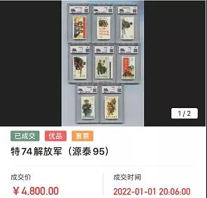 特74解放军如果在半个月前我说这套票要卖到5000可能谁都不会相信,但现实却是如今的成交价为4800,距离5000也仅仅一步之遥,半个月前此票的价格为3950,仅仅过去2周涨幅22%!