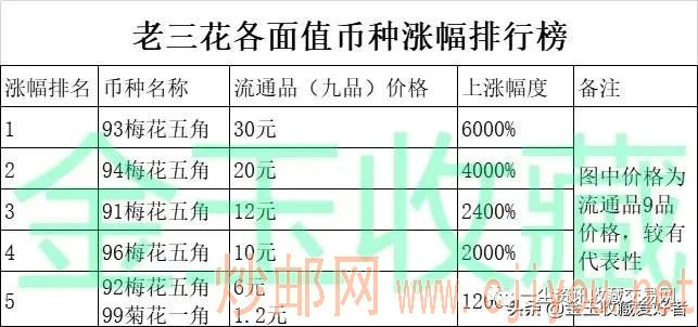 二、29枚老三花品种收藏价值排行榜