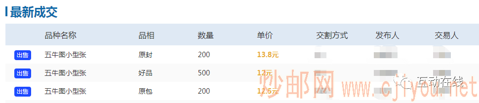 ▲五牛图小型张互动网最新成交