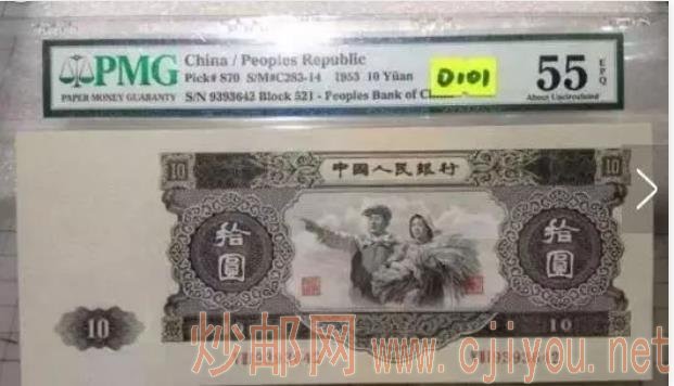 大黑拾是新中国成立后,首次发行的10元人民币,发行于1957年,由前苏联代为印制。这张纸币在收藏界非常吃香,是二版币中的“币王”。