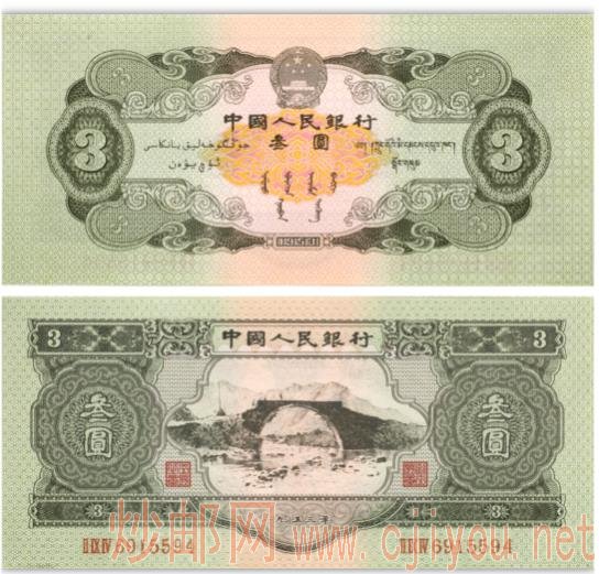 二版币中的3元面值可谓是空前绝后,是我国纸钞类币种中第一张,也是唯一一张3元券。这张三元纸币由苏联代为印制,因此又被称为“苏三元”。不过,由于后来中苏关系恶化,为了防止苏方利用手中的印版印制“真版伪钞”,扰乱我国金融秩序,这张3元纸币只流通了不足10年。当时销毁得比较齐全,因此其存世量极少,收藏价值很高。在“苏三元”之前之后的几套人民币中都没有三元纸币,为什么这一套中会有这张“苏三元”的出现?原因有以下两点。苏联那边的文化认为3是完美的象征,因此常用“3”面值,比如说3卢布。当时正是我国全面向苏联学习时期,中苏关系正处于“蜜月期”。由于是委托苏联印制,也有借鉴苏联面值体系的意思。第一套人民币面值过大,已经不利于市场流通和经济发展了,因此急需发行一套新的人民币。时间紧迫,但是国内的印刷技术不过关,产能也跟不上。因此只能委托老大哥苏联印制。同时,为了减少假票损失,面值不能过大,于是最终决定,发行3元面值作为调剂。目前市场上品相大多为流通过的,有软折,有磨损等。