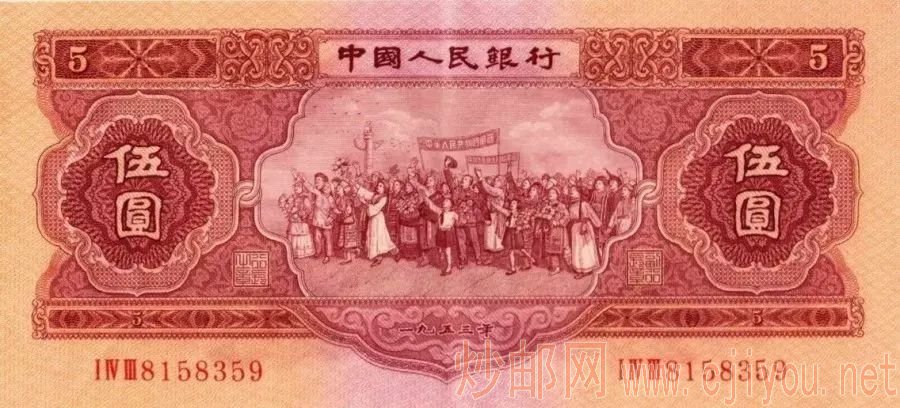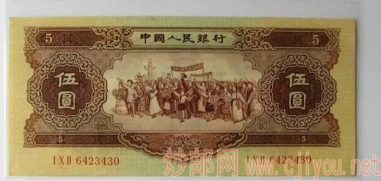 因为在当时,我国的造币技术还不成熟,所以委托了苏联老大哥来代为印刷,并于1955年3月1日发行了红五元。这张钞也是“苏三珍”之一。