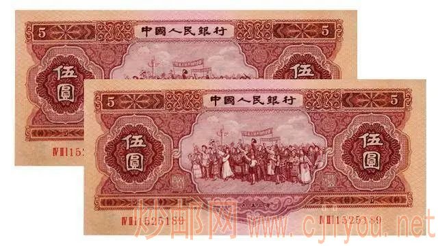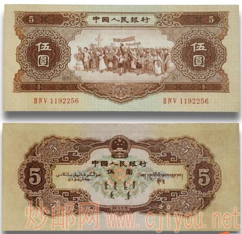 在第二套人民币中,有两个版本的五元纸币,正面图案都是各族人民大团结,设计非常精美。