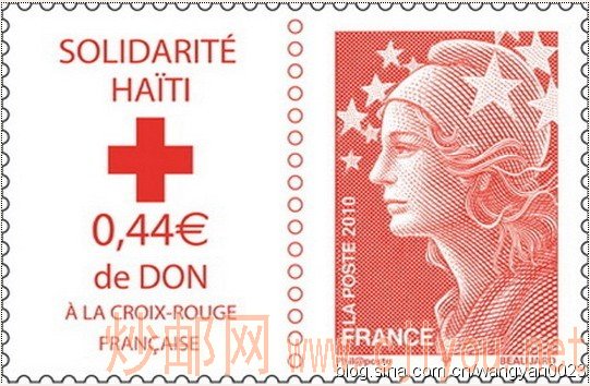 2010年1月19日,法国邮政临时追加发行了一枚“支援海地”附捐邮票,以募集资金帮助海地大地震的受害者。
