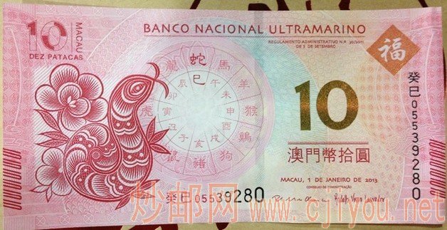 澳门龙钞蛇钞对比图,生肖钞,贺岁钞