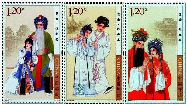 7、《昆曲》,志号:2010-14《昆曲》特种邮票全套3枚。