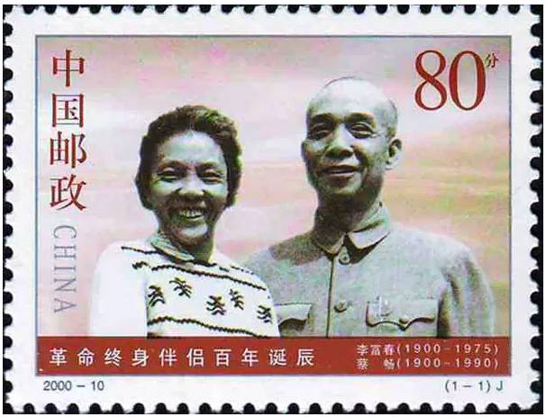 邮票选用了李富春和蔡畅夫妇1956年春结婚33年的合影为主图。背景为彩霞。简捷、明快的构图概括了老一辈无产阶级革命家蔡畅和李富春这对革命伴侣相濡以沫的一生。