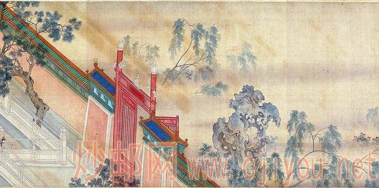 在传世仇英绘画作品中,台北故宫收藏的《汉宫春晓图》卷最为精彩,描绘汉代宫闱的日常生活场景。这一历史题材绘画,使用南宋院体绘画技法,在明清以后人物绘画中无出其右。