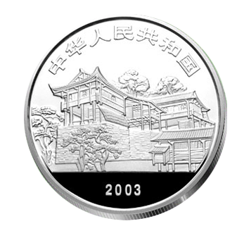 试看西海云雾中,御笔峰端指长空。奇峰异石观景台,三山五岳败下风。御笔峰被公认为是武陵源砂岩大峰林风光的标志景点,堪称天下一绝。御笔峰是并列的三座石峰,高低不一,峰顶长有松树,极像几枝倒插的毛笔。它是大自然的鬼斧神工之笔,但在民间传说中是土家族起义领袖向大坤的亲用御笔倒插于此。银币画面采用远景仰视的取景角度,以表现此峰的高而险。几座细薄坚挺的山峰非常有型,果真形似几只倒插的毛笔。其后是远耸群山为屏,底下是作陪的峰林仰视,在它们的互相衬托下,使得御笔峰显得更加险峻。在御笔峰的四周,还有千百座石峰隐伏于烟云之中,有如千军万马出没。设计者还有意在山脚处充填了空幽飘渺的云雾,带来一股遥若天外的高远神韵。两边的绝壁上松柏挺拔野花烂漫,观者虽在币外,却也仿佛走到崖边,有了腾云驾雾之感。御笔峰挥洒着张家界众奇山的清风瘦骨,孤绝于世。