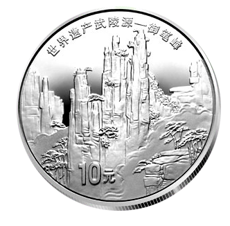 世界遗产系列之武陵源金银纪念币中的两枚银币,在币面设计上,兼顾了自然景观与民俗风情,具有更为丰富的意象层面。