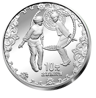 另一枚银币的主题画面是缠绵迷人的土家族摆手舞。800万土家族人民,诞生、成长于武陵山区,灵山秀水滋养了他们的独特文化和艺术。土家人没有文字,其中摆手舞被认为是最能够代表土家族文化的舞蹈艺术,有诗云:福石城中锦作窝,土王宫畔水生波,红灯万盏人千叠,一片缠绵摆手歌。在世界遗产的相关介绍中,还曾经有趣地称呼这种古老的民族舞蹈为东方迪斯科。