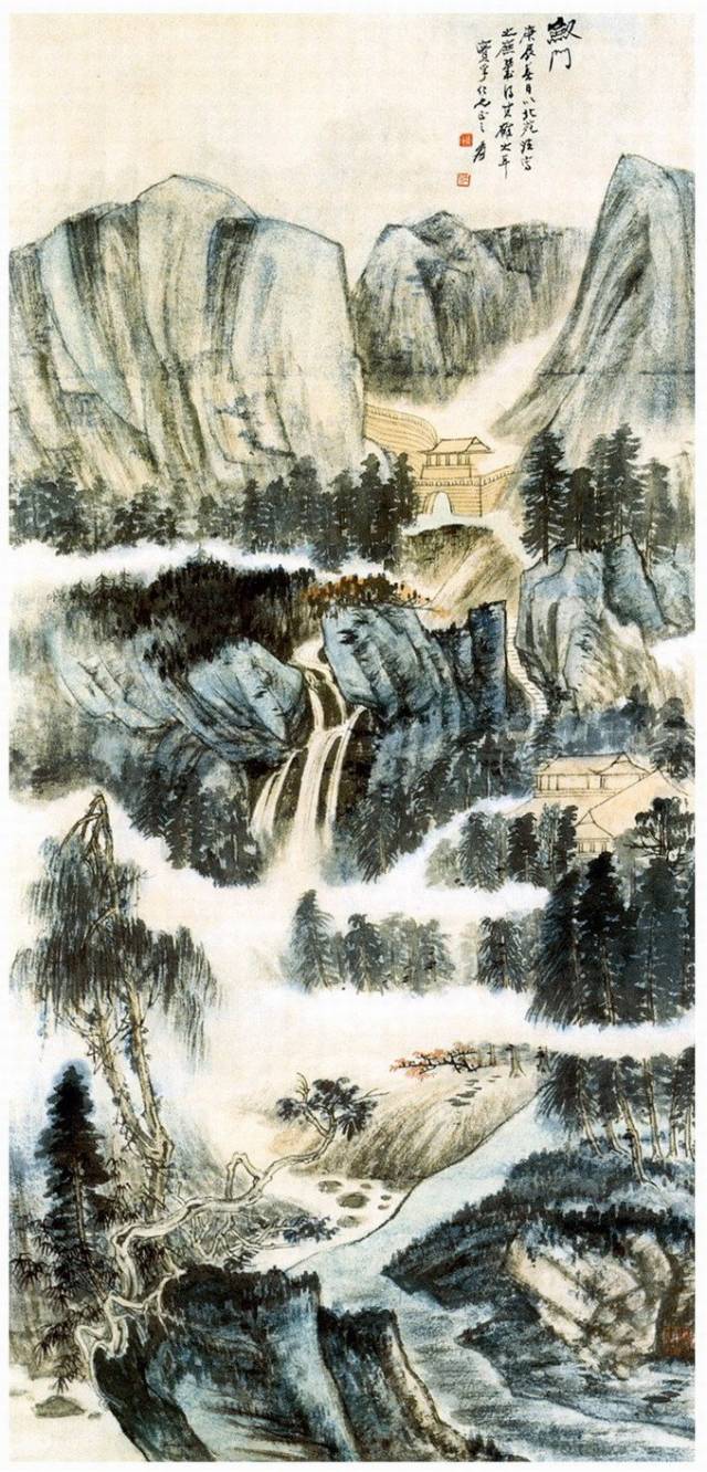 张大千青绿山水画中,大多画的是中国的名山,例如巫山、峨眉山、庐山、黄山等等。张大千青绿山水画用的主要颜料就是青绿色,将山景的苍翠欲滴展现的淋漓尽致,不同与古画中的山水画。