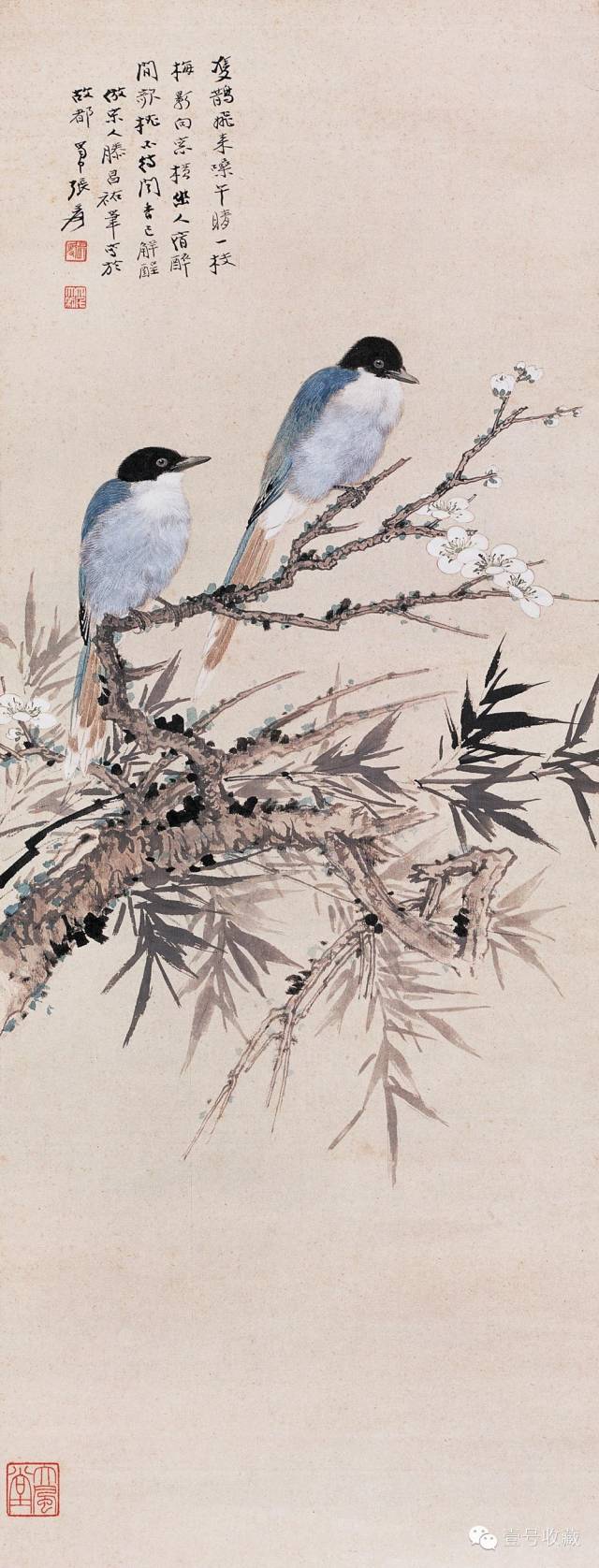 张大千的花鸟画,刻意扬弃清末明初那种狂狷不羁的超逸风气,宁愿在优雅中求清逸,既不失院体的工整凝练,又有粗笔写意的画风。“含蓄的笔势,绝弃风华,温静的墨意,精炼于骨,淡雅而质朴”,展现出凝气聚古的典雅特色。