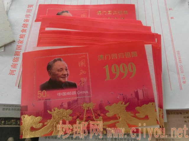 我给澳门回归金箔型张画个相 日期:2017-10-06 我给澳门回归金箔型张画个相 本人认为目前最有投资.投机价值的超跌型张是:[澳门回归金箔型张];按20年前邮政发行的面值价(50元/枚),现市埸价才打6折--8折,即买价30元/枚,卖价40元/枚;两年前电子盘最高价3800元,现货市埸卖近300元/枚好成交! 澳门回归金箔型张具备政治题材.台湾回归祖国题材.伟人题材.礼品题材.高面值邮品销毁.消耗题材.严重打折超跌题材等!因此.后市增值潜力大,下跌风险极小.基本为零风险!个人观点,仅供参考,风险自负! 此主题相关图片如下:题相关图片如下: