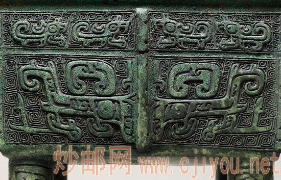 其次,在纹饰上,中国青铜器主要以动物纹为主,几何纹次之,人物纹罕见,包括饕餮纹、夔龙纹、凤鸟纹、蝉纹、蛇纹、人面纹,有人面具,人形雕塑。其中最有代表性的是四川广汉三星堆出土的铜人像。后母戊鼎(原称司母戊鼎)上的夔龙纹,它不再仅仅是夔龙这种虚幻的动物,而是代表了统治者力量与尊严的符号。而西方青铜器的纹饰则以人物为主,动物主题在其中占重要地位,几何纹为辅,包括面具、雕像等。