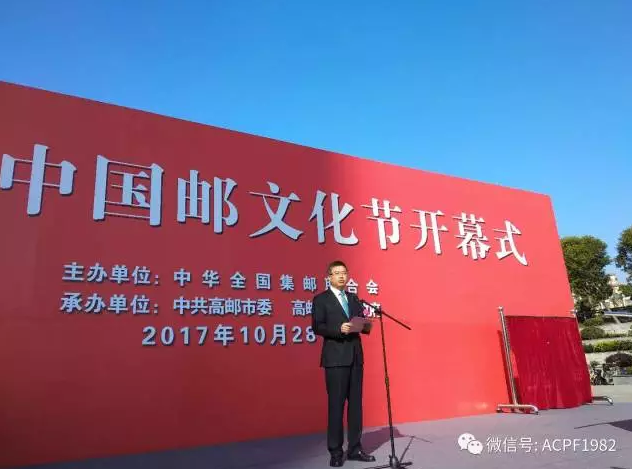高邮市委书记勾凤诚在致辞中指出高邮因邮得名,因邮而兴,为做大邮文化,做亮邮名片,高邮始终坚持以邮会友,以邮兴邮。
