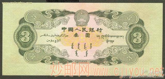 面值为3元的人民币从1955年发行,至1964年废止,前后流通仅9年。从数学上来说,只要有1、2、5和10,就能组合成1—9的任意数字,3显然是多余的。此后的几套人民币,都不再发行不实用的3元钞票。