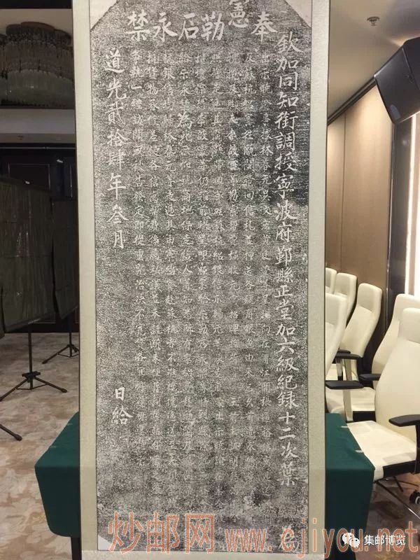 清代道光二十四年(1844年)宁波《通裕信寓碑》原拓本被几位邮友拿到了杭州中国民信局研讨会会场,引起了热烈的反响。“奉宪勒石以禁”,以法律的严肃性维护了清代民间通信的权益。同时,此碑对民信局起始年代的研究具有重要的参考作用。