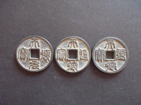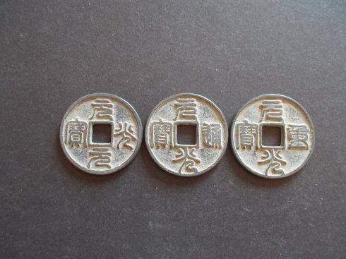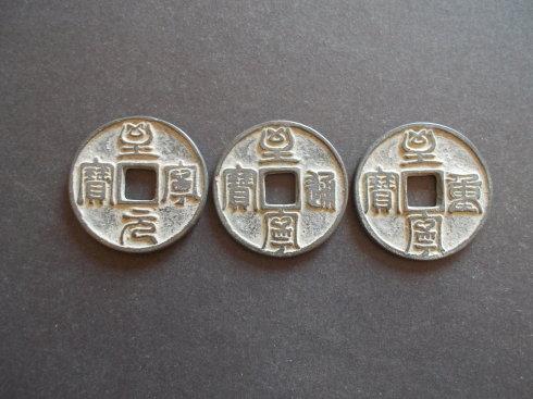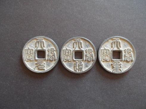 崇庆元宝,乃大金国卫绍王崇庆年间(公元1212—1213年)铸币,主铸材质青铜,辅铸有金银质。崇庆钱分元宝和通宝两种宝文。旧谱载元宝为篆书折五大钱;通宝楷书则有小平、折二两种,钱文仿瘦金体书意。旧谱曰,崇庆元宝传世极少,有谱甚至称其为“孤品”。