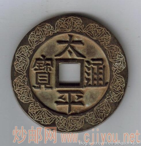 京川说,鉴于天成元宝这一形制的镇库大钱实实在在的摆在案头,包浆锈色又绝无疑点,因此,将其初步断为中国高古史上首次出现之年号超级镇库大钱。这里,以超级形制“镇库大钱”论,如果说超级大半两为“祖”,那么此品形制就应为“宗”!除非隋唐铸币亦出现如此规制之镇库大钱(泉谱所载之那枚五代十国“大唐镇库”不能相提并论)。应该是大约在隋唐之后的五代十国期间,始出现这种形制的镇库大钱,其开创了铸超级形制镇库大钱先例后,影响 深远,至后来两宋包括大辽,直至清代,连绵不绝,均受其影响。而开铸超级形制镇库大钱,长期以来因为其量稀少至极,加之入地上天之后的种种原因,便一直未得显露尊容,难以出现,从而导致史上诸谱不得有载,更无人纪实。