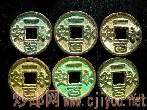 词条:五代十国时期盘踞幽州的刘仁恭,刘守光父子所铸造。有铜铁两种。铜钱存世量极少,价格极高,为古钱珍品。铁钱存世量也已不多。此外“永安一千”面文形制独特,按照右左上下顺序直读,如同“永安一百”,“永安五百”;而“永安一十”则是左右上下直读。