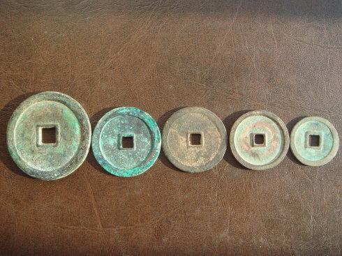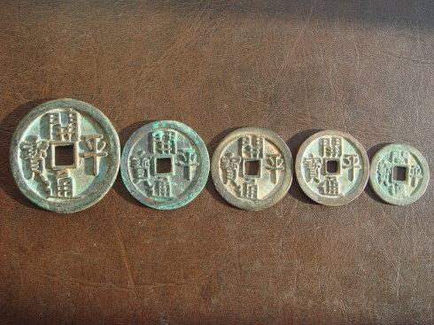 我的开平元宝钱币系列。这是折五、折三、小平和八分钱的系列。大家可以记住。八分钱的开平元宝是左旋读的。