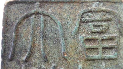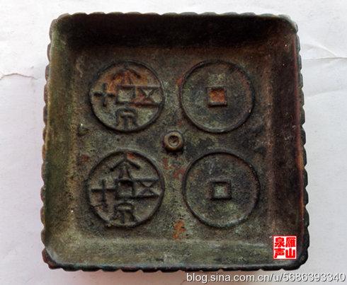 从目前所见,辽代所铸的钱币不足宋代的十分之一。契丹(辽)钱总量稀少,契丹(辽)的钱范更稀少。今日所展,契丹仿铸新朝“大泉五十”背“大富万人”钱范。其特点有:一、形体不同。本范成斗形,上宽下窄,四周呈瓦楞状,既美观又实用。上口规格82mm×82mm,下口规格72mm×72mm,高17.8mm。 二、书意不同。钱范背面铸字, 历代罕见, 且文字增减笔划,随意驰骋,粗犷豪迈,尽显草原风格。 三、功能不同。 钱范本意在于铸钱, 而此钱范除铸钱外, 着意于政治宣教, 时刻不忘宣传自己的政治主张,其时代特色十分鮮明。从所见钱范来看,未见有与此钱范同类者。