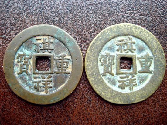 一、下边这两枚是祺祥重宝宝源局的标准样钱。