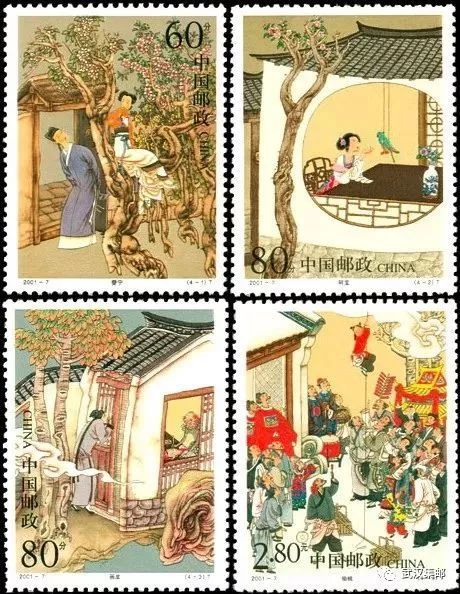 全套4枚加小型张1枚,总面值13.00元(其中邮票面值5.00),影写版印刷,2001年4月21日发行,由陈全胜设计。