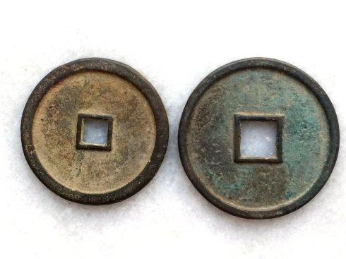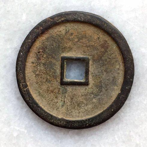 是品铸制及其精美,锈体、包浆自然生成。钱经37.5MM、穿经6MM、厚3MM、重20克。为了便于和“金国通宝”更加直观的加以比较,特将二图一并展示,请泉友鉴赏。