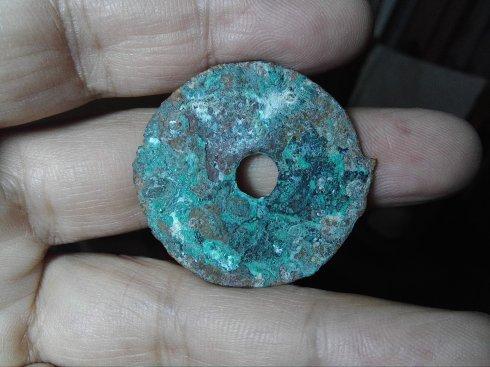 离石环钱:是战国晚期赵邑离石(今山西离石县境)所铸环钱,时限也在公元前228年秦占赵后,较“蔺”环钱略晚,形制同“蔺”,圆孔,平背,仅形体较小。面文“离石”显小篆意,斜列穿孔右下侧,甚为秀美。离石环钱因铸行时间更短,故较蔺字环钱更为珍贵。