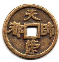 据《十国春秋-楚》记载:唐末,武安军节度使马殷,征战十数年,占据湖南八州之地。907年,后梁太祖朱温封马殷为楚王,不久,马殷又求封天策上将军,建天策府。后梁乾化元年(911年),马殷铸天策府宝钱。后唐天成二年(927年),马殷受后唐封为楚国王,建都长沙。如此,则“楚王”、“天策”二词之义已经明了。后唐天成四年(929年)冬十月,楚王马殷薨,次子马希声继位。未及三年,希声殁,马殷第四子马希范继楚王位。后晋开运三年(946年)秋九月,晋主石重贵加封楚王马希范为都元帅。后晋开运四年(辽会同十年)春二月,契丹主遣使册封楚王马希范为尚父。如此,则“都帅”、“尚父”二词之义也已明了。综上所述,可以断定,此二泉当系楚王马希范为庆祝册封所铸之 纪念币。