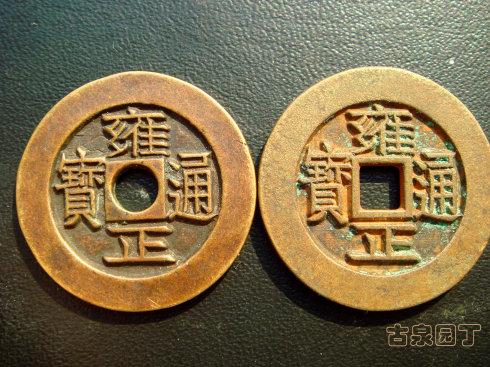 请看,这是失蜡法铸造还是雕刻的?这两枚钱币无论是失蜡法铸造的还是人工刻制的。真钱是否成立?如果成立。华夏古泉的人工雕母就全部是当代伪造的。