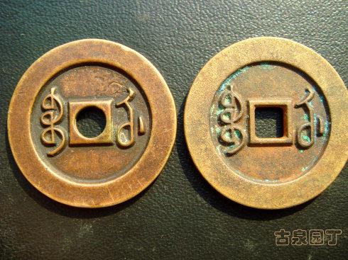 看看满文的宝字,上边的字刻错了,硬是加了一道纹分开了。古泉网很多小子讽刺别人的钱币是假的就说“这要是皇帝知道了, 那是要杀头的”。各位,你看这一处败笔,仅仅是败笔吗?清朝钱币万万千千,各个满汉文都有满文宝字。这么个雕母竟敢出错,这够不够低级?这钱是谁收藏的,谁鉴定的,谁拍卖的,谁买去了?