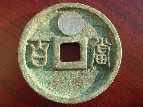 3、我首先认可的,这是大型种母钱币。就是直接手持在模板上压制钱模的母钱。字口约2毫米。