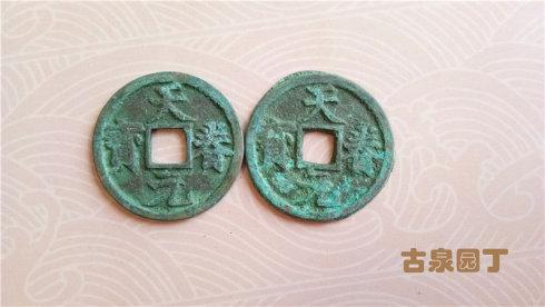 3、天辅元寳、通宝和天辅元寳楷书钱一对。