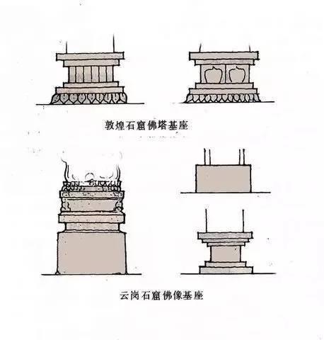 云冈石窟建于北魏孝文帝时期(公元五世纪),自印度教由汉代传入中国,云冈石窟便是中国最早全面反映佛教艺术的石窟之一。另外在佛教艺术圣地敦煌石窟中,也可以看到这样的基座。